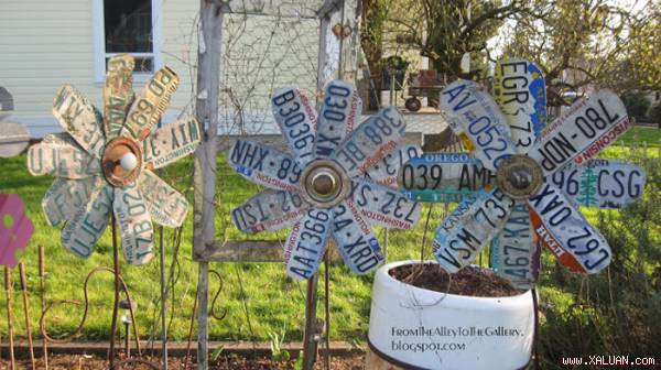 Biển số xe cũ nay còn có thể trở thành những cánh hoa trang trí sân vườn.